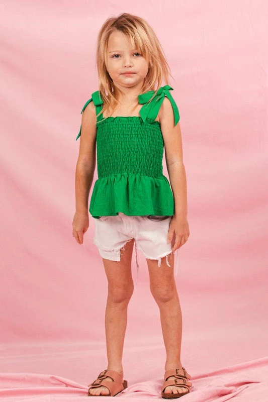 Youth smocked peplum top in kelly green