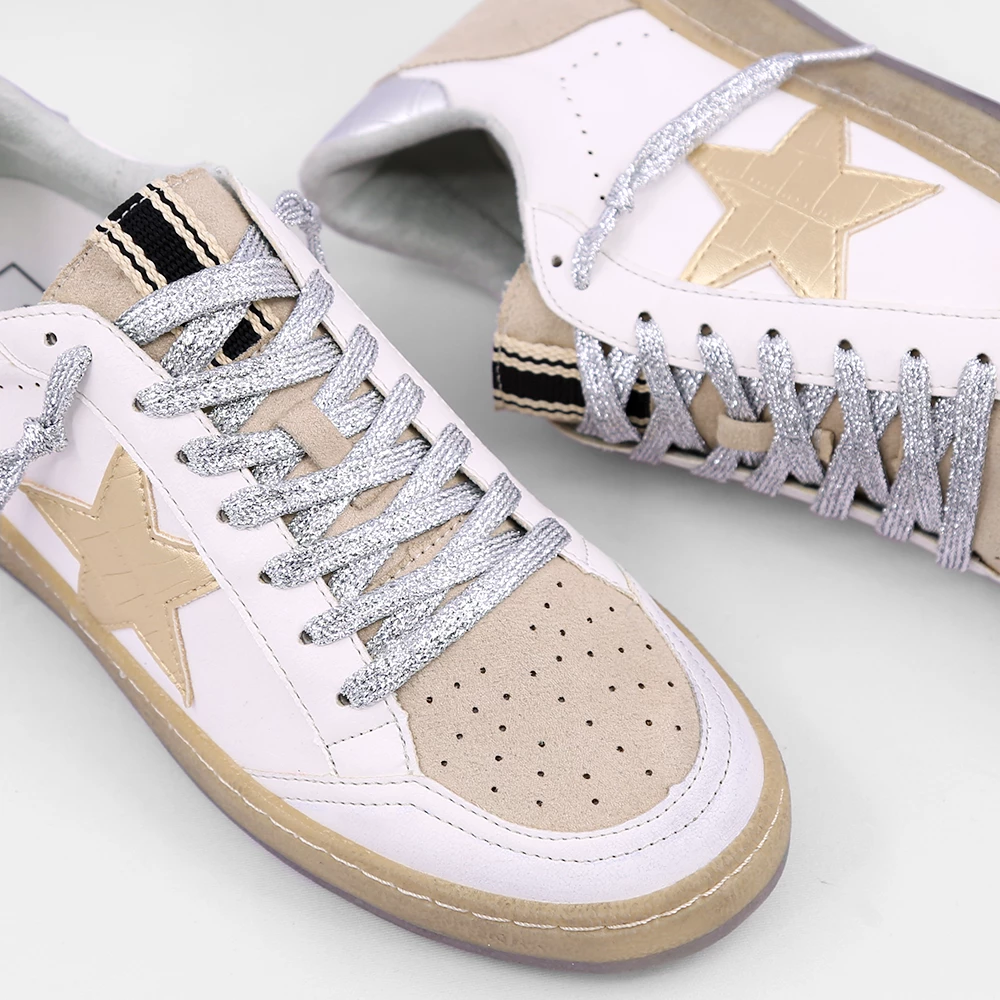 A classic reimagined! The white Rosalia Sneaker features a tan suede tongue with a gold star and silver heel tab. So trendy and super comfortable! Perfect for a casual day of running errands or super cute dressed up for a casual date.