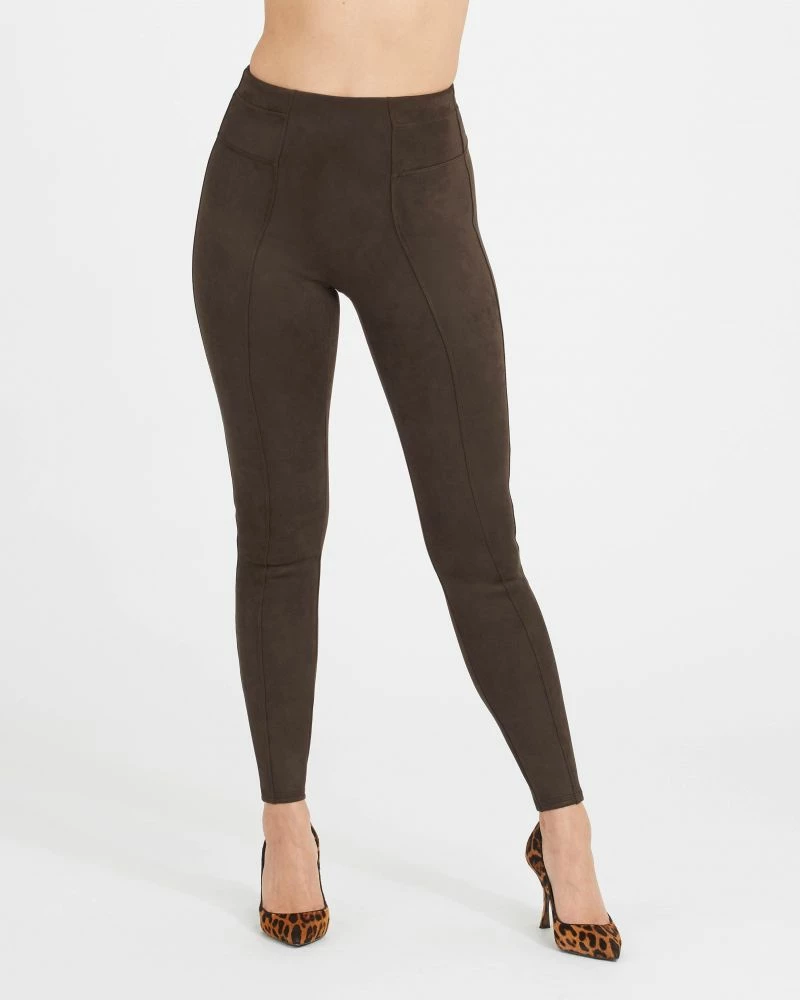 Introducing Faux Suede Leggings made with the magic of Spanx! This luxurious stretch, faux suede fabric is soft and chic and elevates every look. Featuring a bulk-free design, this style offers the most discreet tummy shaping for easy styling.