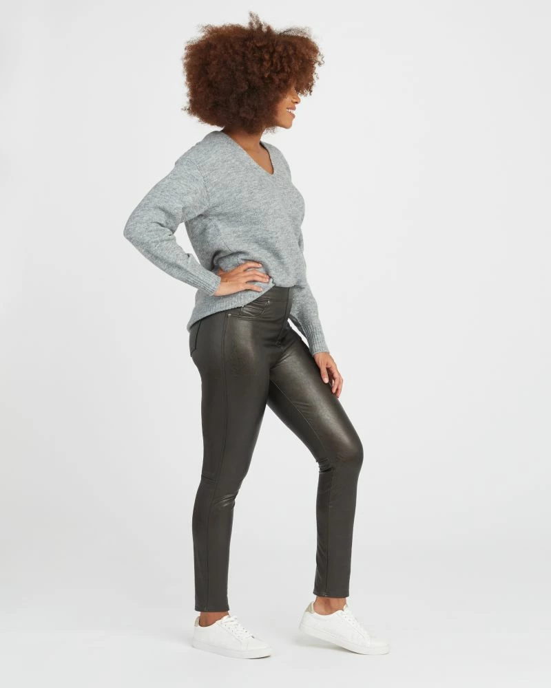 The Leather-Like Ankle Skinny Pant is sure to be a new staple in your wardrobe. Leather-like fabric is more structured and gives you the look of a true leather pant with 5-pocket styling. You won’t just “like” them… you’ll love them!