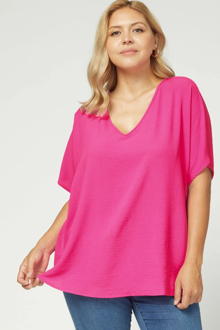 Hot Pink V Neck Oversized Top
