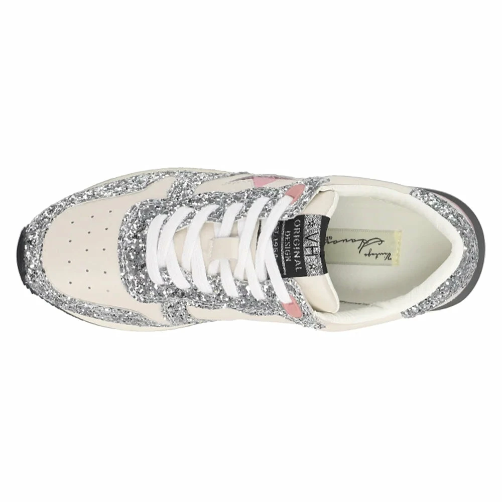 Rock 4 white and pink with silver glitter sneakers.