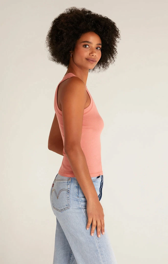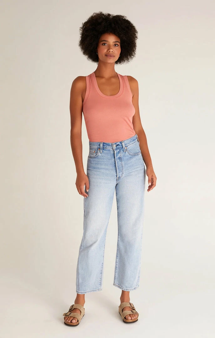 So comfy you can live in it! The Sirena Rib Tank is made from a cotton spandex rib knit fabric that was given a special wash for extra softness. With its sleek silhouette, this tank makes the perfect summer layer, no matter the weather. Soon to be your fav go-to!