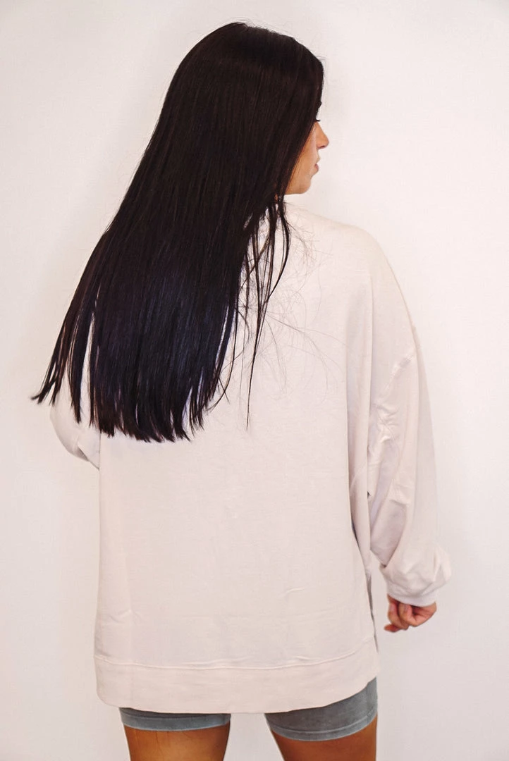 The Weekender goes modern. One of our most popular silhouettes, made from our Baby French Terry knit fabric, features a crewneck design and oversized fit with exaggerated slits at each side. The Modern Weekender has a familiar sweatshirt feel with a hi-low hem and ribbed detailing at the sleeve cuffs and bottom band. The ultimate pull-on style for any occasion, this top will become a season staple.